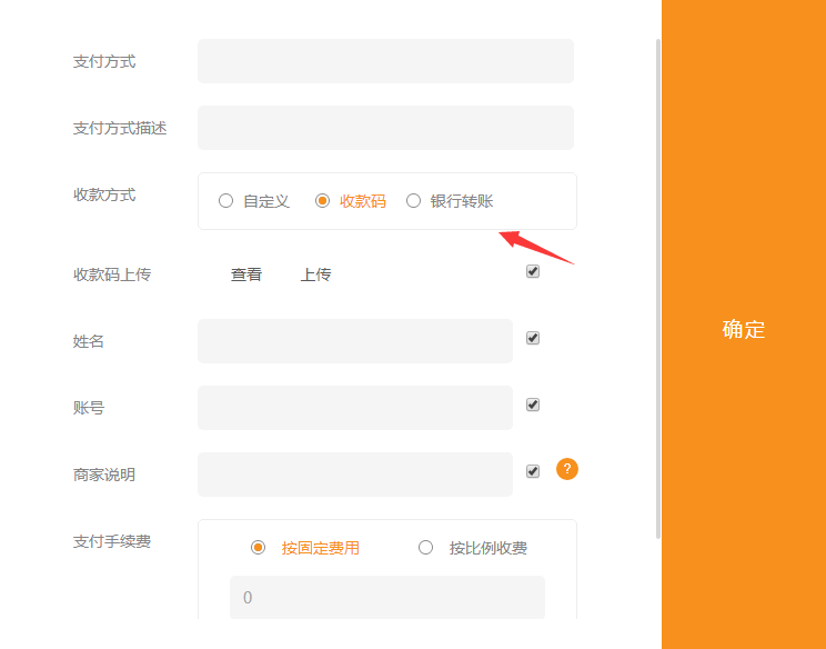 自建支付方式新增了扫码和银行转账两种类型